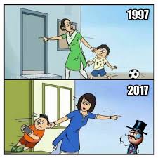 La verdad es que el niño se queda más pegado a un celular que al mundo exterior hoy en día no como antes que los niños de esos tiempos salían más al exterior.